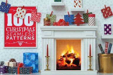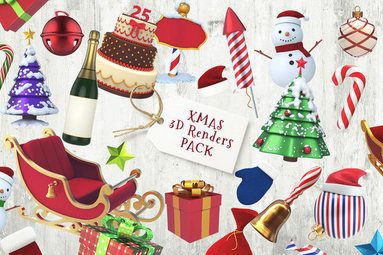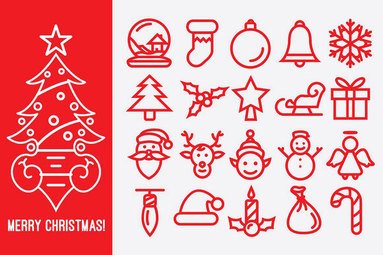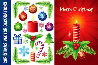 Christmas bulbs, pine branch, mistletoe, snowflakes, gift, candy cane, candle