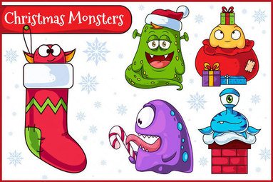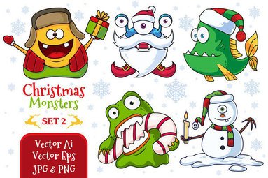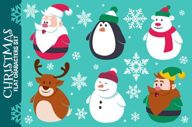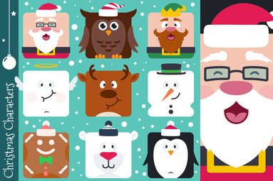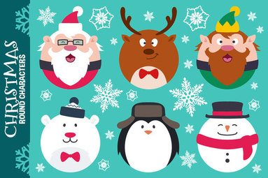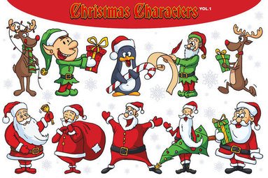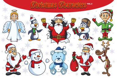 10 vector Christmas characters like angel, bear, penguin, reindeer, santa, snowman